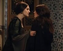 Отношения Айбиге и Хюррем неоднозначны. Сначала девушка очень интересуется Хасеки как законной женой султана и женщиной, о которой говорит весь мир. Но позже они становятся настоящими подругами, Айбиге рассказывает Хюррем все свои тайны, а позже с ножом в руках защищает подругу во время бунта. Но вскоре Хасеки предает принцессу ради своих интриг, но даже после этого она не ссорится с Хюррем и доверяет ей.