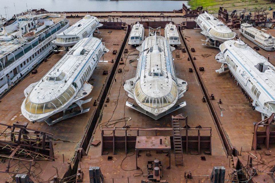 Из выпущенных во времена СССР скоростных судов «Метеор» стал самым удачным Из выпущенных во времена СССР скоростных судов «Метеор» стал самым удачнымСвалка истории. База хранения судов на подводных крыльях типа «Метеор»