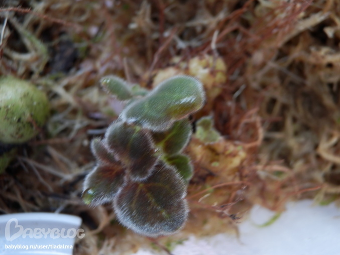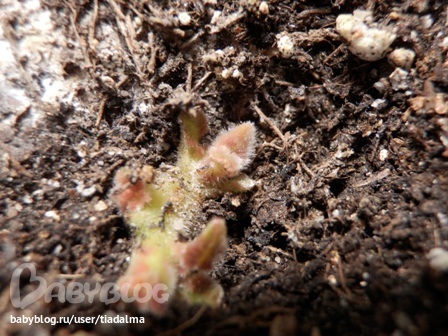 И что вы думаете? Однажды, в начале августа, во время полива между кустиками каланхоэ я увидела малюсенькие листочки просыпающейся глоксинии! Они увеличивались в размерах с каждым днем!