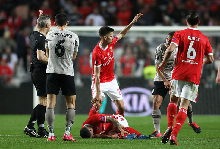 «Бенфика» играла с «Шахтером» и уступила в Харькове 1:2, а дома трижды вела в счете, но каждый раз гости отыгрывались. В итоге мрачные для лиссабонцев 3:3.