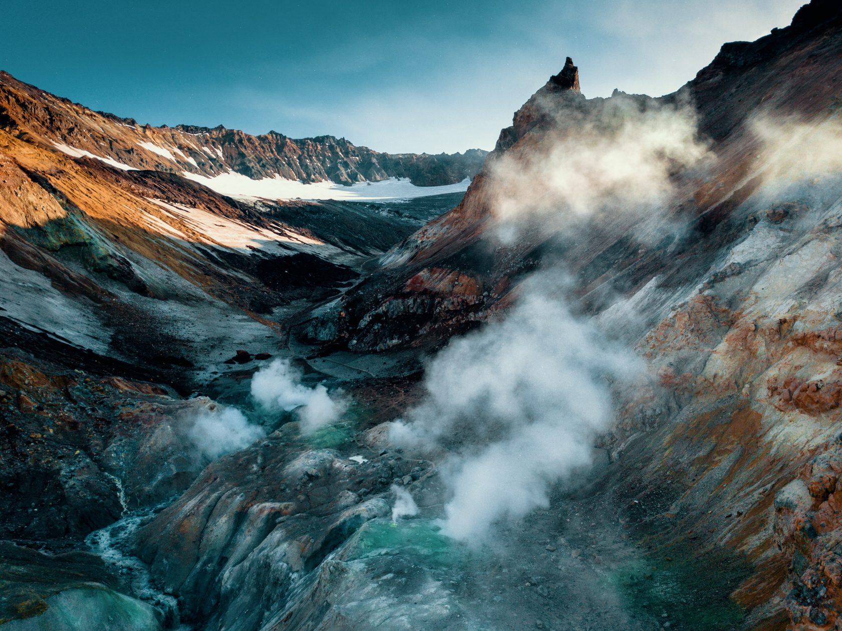 Конечно, выбор за вами, но одна из самых невероятных картин ждет вас в кратере Мутновского вулкана. Тут и река, и дымящиеся фумаролы, которые покрывают все вокруг яркой желто-зеленой серой, и остроконечные вершины.