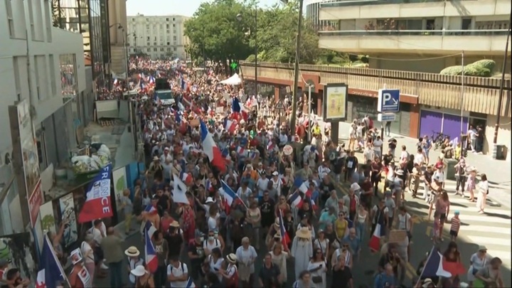 Слезоточивым газом и дубинками полицейские пытались отбиться от разгневанных граждан. Но демонстранты не спешили отступать и бросали в правоохранителей дымовые шашки. А вот жители столицы к протесту подошли творчески – яркие плакаты, необычные маски и костюмы статуи свободы как напоминание о главной французской ценности. Ее, по мнению манифестанов, с начала этой недели стало меньше. Чтобы пойти в ресторан, магазин или кинотеатр, а также для путешествий на дальние расстояния жителям Пятой республики нужно предъявить специальный документ, подтверждающий вакцинацию или отрицательный тест на ковид.