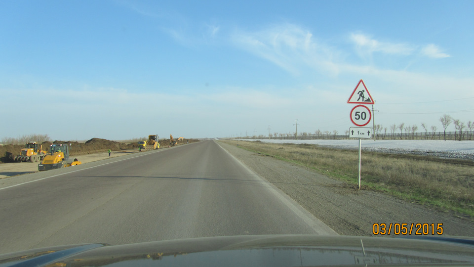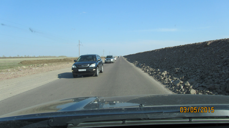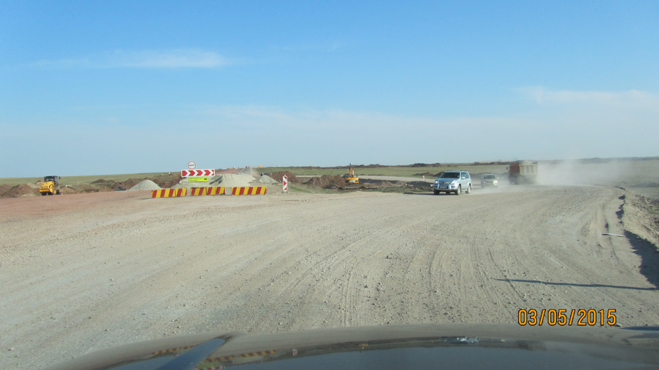 Если вы заметили, на фотографиях выше, почти везде нормальный асфальт, а новая дорога, прокладывается рядом. И лишь периодически петляют объезды мест будущих развязок. Так вот, как я писал выше, такие дорожные условия начались, спустя 40-50 км, от Астаны, а длился этот кошмар до самого Темиртау. То есть почти 143 км и три часа времени и натянутых до предела нервов. Так как этот отрезок пути, кроме как кормушкой никак не назовешь! Ну 70-80 можно легко идти, зачем же такие крайности как 40-50 км\ч? Может я просто чего-то не понимаю и не разбираюсь в требованиях безопасности на дорогах?