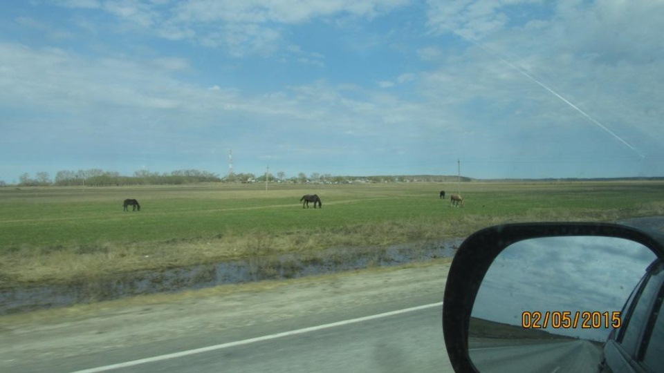 Вот уже и трава зеленая начала появляться и лошадки, которых мы до этого места не встречали.