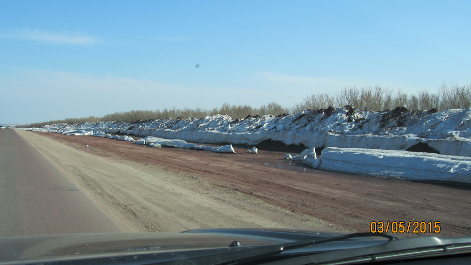 Неплохие такие сугробы, вода кстати от них, при таянии стекала куда-то вниз, вдоль дороги, а потом посмотрел карту и понял, действительно мы же едем вниз на Юг Казахстана, вот такая простая вышла детская логика ))