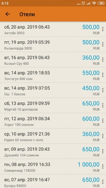 С Средней Азии очень дешевое проживание, поэтому необходимости в использование автопалатки практически не было. На проживание каждый из нас потратил по 10120 рублей. Стоимость одной ночи на человека варьировалась от 330 рублей до 1000.