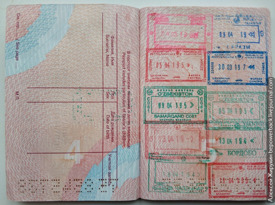 Вчера прилетел из полуторамесячного пребывания в Средней Азии. Помимо культурного пребывания по делам в Алма-Ате, посвятил немало времени поездкам по республикам Средней Азии - Узбекистану, Таджикистану, Киргизии и, собственно, Казахстану. Об этих поездках расскажу позднее и подробнее. А пока коснусь вопроса пересечения границ между республиками. Вопрос сей отнюдь не праздный, а неведение ряда нюансов вполне может абсолютно отравить путешествие.