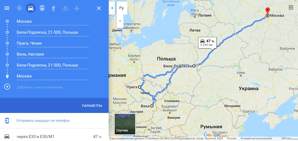Москва — Прага, маршрут на автомобиле