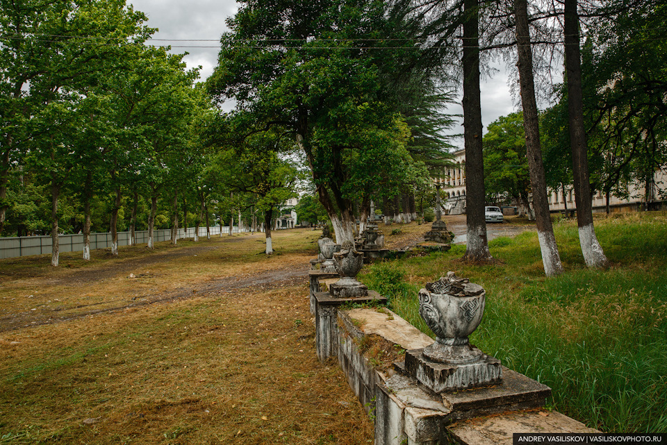 Цхалтубо находится в Грузии, недалеко от Кутаиси, и в СССР это место было одним из самых популярных бальнеологических курортов. Бальнеология — это раздел медицины, использующий в качестве лечения целебные грязи и минеральные воды. И того и другого в Цхалтубо было в избытке, поэтому в советское время здесь на площади в пару квадратных километров отстроили аж 19 санаториев и пансионатов, а путёвка сюда считалась признаком очень высокого статуса. Да что там говорить, сюда даже курсировал скорый поезд "Москва — Цхалтубо". И это в городе с населением в 17 тысяч человек! Но потом случился развал Советского Союза и сразу всё пошло по…