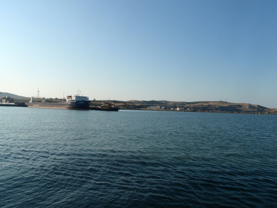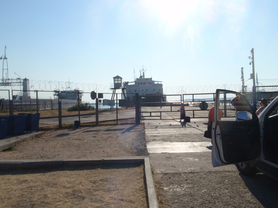 Татьяна уговаривает нас остаться, но наша цель-Крым. Поблагодарив Татьяну за гостеприимство, отмечая для себя что на следующий год мы обязательно к ней заедем на несколько дней, берем курс на «Порт-Кавказ». В порту стоит большая очередь из автомобилей. Мы ее нагло всю проезжаем и встаем первыми перед шлагбаумом порта. Вроде никто из автомобилистов не возмущается. Узнаем порядок проезда через границу и ждем когда подойдет паром. Паром ходит каждые 1,5 часа, поэтому ждать приходится недолго. Заезжаем на терминал. Там всем кто на транспорте выдают какие то жетончики и отправляют в кассу за билетами. Поскольку у нас ни номеров ни техпаспорта нету, нас отправляют в кассу без всего. Там пришлось немного повоевать с кассиром. С чего то тетя придумала что на скутер, кроме договора купли-продажи, должен быть еще какой то документ. И на основании этой своей догадки решила билеты нам не продавать. Пришлось трижды, громко, на весь зал, процитировать ей выдержку из правил регистрации транспортных средств, где говорится об обязательной постановке на учет всего, что с мотором с выше 50 см3. Одновременно с речью тыкаю пальцем в договор, где указано 49,9 см3. Тетя наконец сдалась со словами, что «Один такой ездил, его таможня назад развернула. Так вот, если вернетесь, то возврат я вам оформлять не буду». «Куда же ты денешься от своих прямых обязанностей» думаю я, забирая билеты. Проезжаем на таможню, на скутер показываем договор. У таможенников никаких вопросов не возникает. Выкатываемся на нейтральную территорию, где ожидаем паром. Жара стоит сильная, поэтому набраем в «Дьюти-фри» холодного пива, расслабляемся на солнышке, на глазах у офигевших от жары автомобилистов. Наконец подходит паром.
