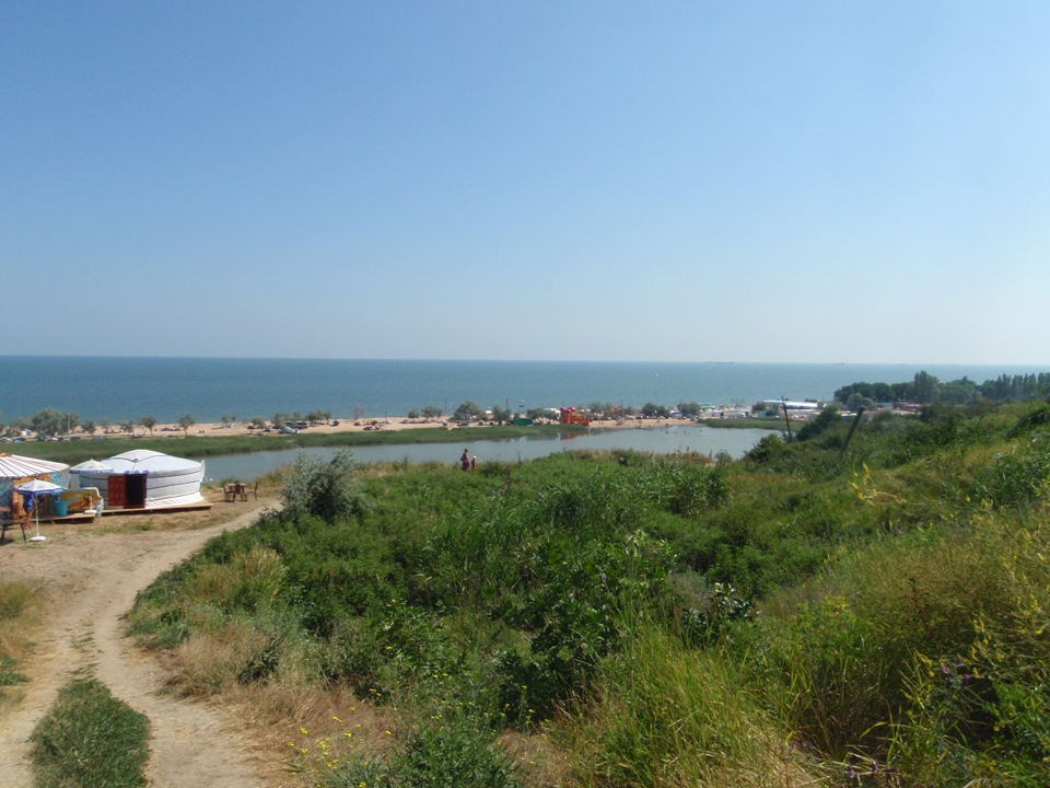 Нет, оно просто темнее черного. И прогревается быстрее. Народ даже переезжал с Черного на Азовское, из-за того, что Черное еще было холодным, а цены там просто бешенные. Рядом с морем небольшое грязевое озеро. Местные утверждают, что это грязь лечебная. Многие стоят на берегу все в грязи, но вот от чего она лечит никто тольком сказать не может. Мы тоже решили на всякий случай вымазаться.