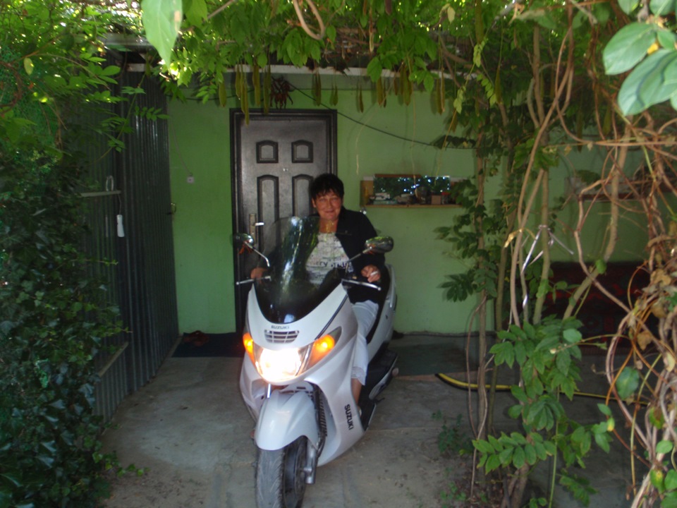 Как то быстро докатываемся до Краснодара, и поворачиваем на Темрюк чтобы завтра оказаться поближе к границе. Уже темнеет, дорога сильно сужается. Местные грузовики обгоняют очень опасно. Пару раз оказавшись в 30 см от фуры без возможности в случае чего уйти на обочину, пришло понимание того, что ехать надо просто посередине дороги. Кому нужно тот обгонит. Уже совсем темно и мы проезжаем какие то поля. Вокруг появляются целые тучи комаров. Мы едем пробивая шлемами эти полчища. Стекла очень быстро забиваются, а когда останавливаемся их почистить, комары пытаются сожрать нас заживо. Наконец доезжаем до заправки, стоим, моем шлемы, рядом подъезжают на Gold Wing парни из Анапы. Кто путешествует сам, сразу отличает путешественников от тех, кто выехал просто покататься. По нашему виду парни сразу поняли что мы издалека. Удивились что едем из Москвы на полтиннике и помогли, через знакомых, найти жилье недалеко от Темрюка. Заезжаем в Темрюк, звоним по данному нам телефону. На том конце женский голос осторожно интересуется кто мы, откуда, на чем едем. Как только сказали что мы на скутере, слышим радостное восклицание «А, так это свои, байкеры! Едьте быстрее, мы вас встретим на дороге». Так мы познакомились с Татьяной.