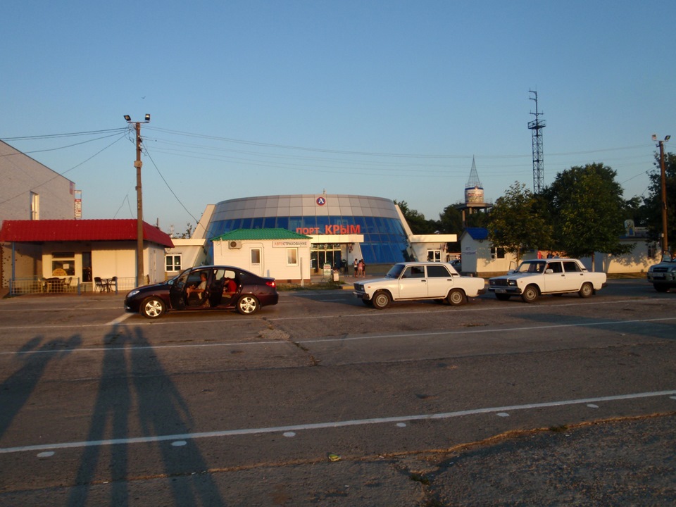 Проблем никаких не возникло. Выезжаем за ворота таможни, переодеваемся, так как уже вечереет и становится прохладно, меняем рубли на гривны и едем в Керчь.