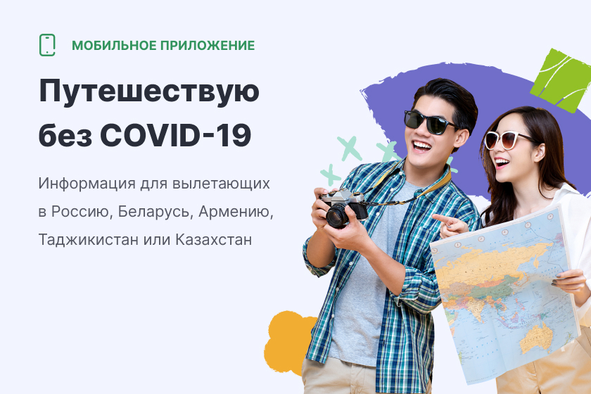 Приложение «Путешествую без Ковид-19» было разработано в 2020 году, чтобы упростить процесс перемещения между странами Евразийского Экономического Союза: Армении, Казахстана, Беларуси, Кыргызстана.