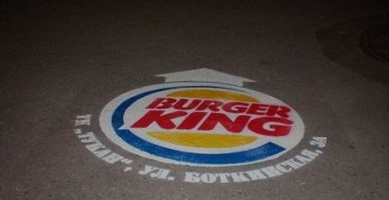 Обычно, это изображение, которое наносится на асфальт специальной краской через трафарет. Разные ее виды предполагают и разные варианты исполнения. Для более длительной службы рекламы рекомендуется наносить по верх нее защитный лак.