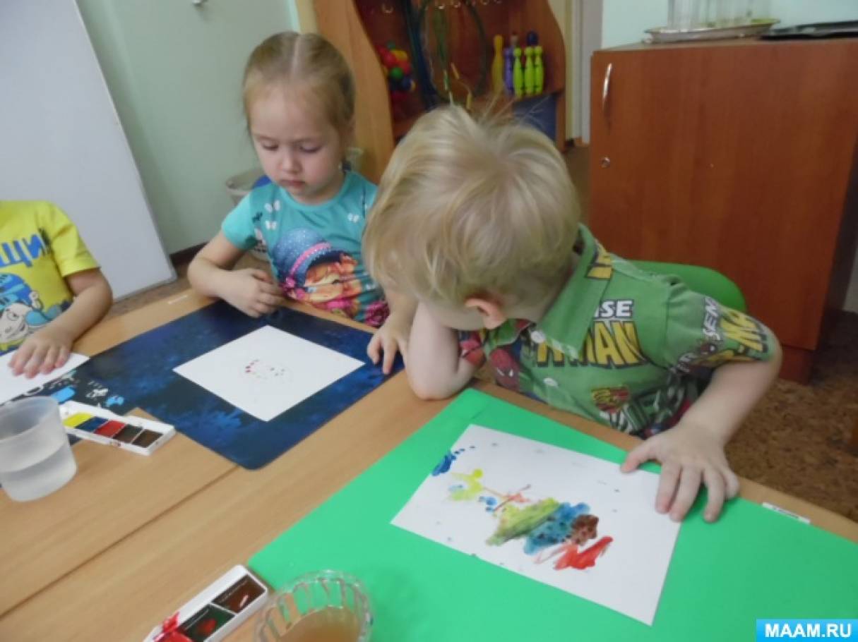 Воспитатель: Молодцы, ребята, у вас очень хорошо получилось. А теперь возьмите салфетки и аккуратно протрите пальчики от краски.