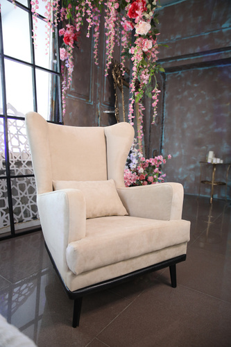 Классический дизайн никогда не выходит из моды, и это ставит все рамки за форму и функциональность. Изогнутые крылья обеспечивают комфорт и уединение, в то время как соответствующий пуф удваивается как случайное размещение.