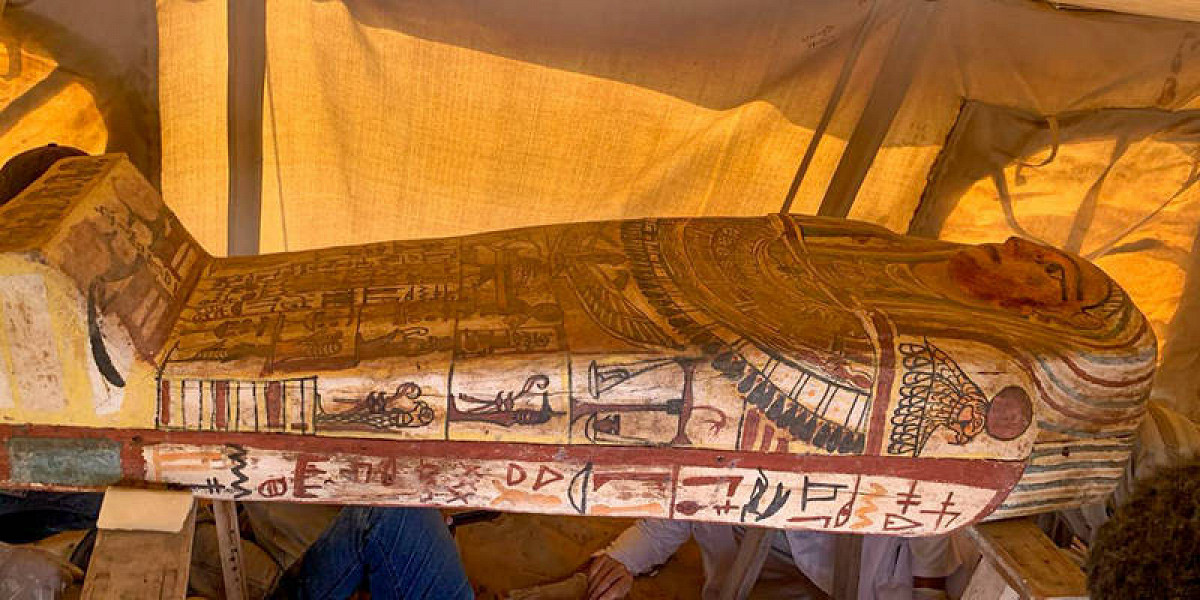 Яркие саркофаги украшенные иероглифами, были извлечены из колодцев большого захоронения Саккара, некрополя древнеегипетской столицы Мемфиса. Археологи подтвердили, что гробы ни разу не вскрывались за все это время.