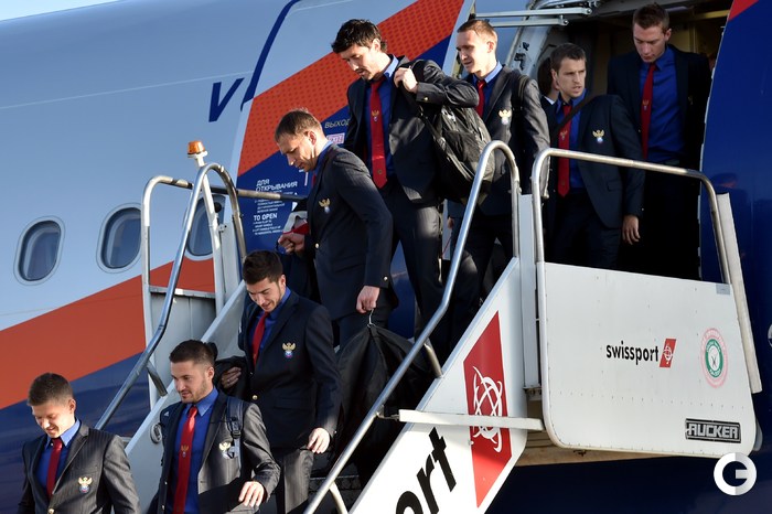 К 23.00, за час до вылета команды в Сан-Паулу, в «Шереметьеве» становится тесно. Намеренно или случайно, но сборную провожают две сотни человек. Ничего изысканнее криков «Россия, Россия!» футболисты не слышат, но и этому рады. Растроганный Игорь Акинфеев говорит спасибо чуть ли не каждому болельщику, а Игорь Денисов раздает автографы.