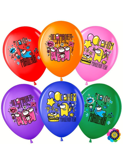 178 ₽ с Premium Новинка Воздушные шарики Among Us (Амонг Ас) С Днем Рождения!, 30 см, 10 шт.