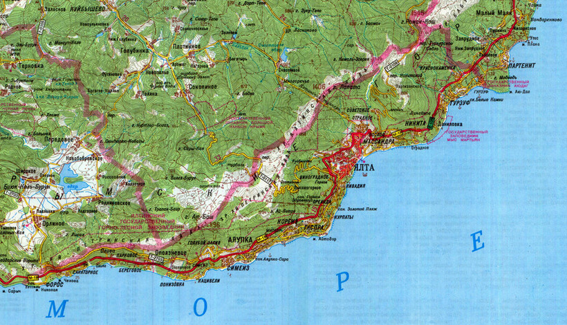Из Москвы на личном авто до Ялты можно добраться за 18 часов без учета остановок и перерывов на еду. Расходы на бензин составят около 10 тысяч рублей. Дорога будет пролегать через Украину. От Москвы нужно ехать по шоссе Е105, которое ведет напрямую до Ялты, протяженность пути — 1 481 км.