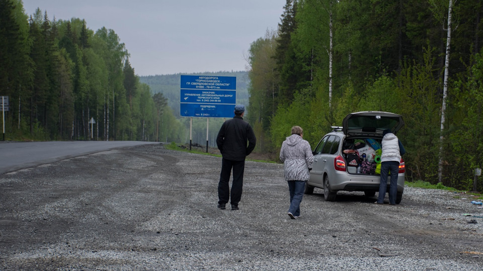 Ехали в 5 человек, багажник заполнен полностью (следующая ВЕСТА КРОСС с АКПП?). Остановку всегда делаем либо на самой границе областей (что на фото), либо на границе Европы\Азии (внутри ссылок).