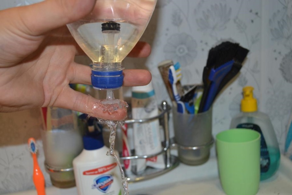 Умыться в речке, ручейке или озере возле кемпинга конечно проще, но если это не чистый горный родник, то не не стоит рисковать и полоскать рот неизвестно какой водой. Лучше будет эту воду сначала прокипятить или продезинфицировать. Можно соорудить нехитрый умывальник из подручных средств: например из всем известной пластиковой бутылки, прикрепив ее к дереву. Вариантов с бутылкой несколько, но если решите искать новое место для кемпинга, то бутылку с собой не возьмете, а правильно утилизировать не сможете.