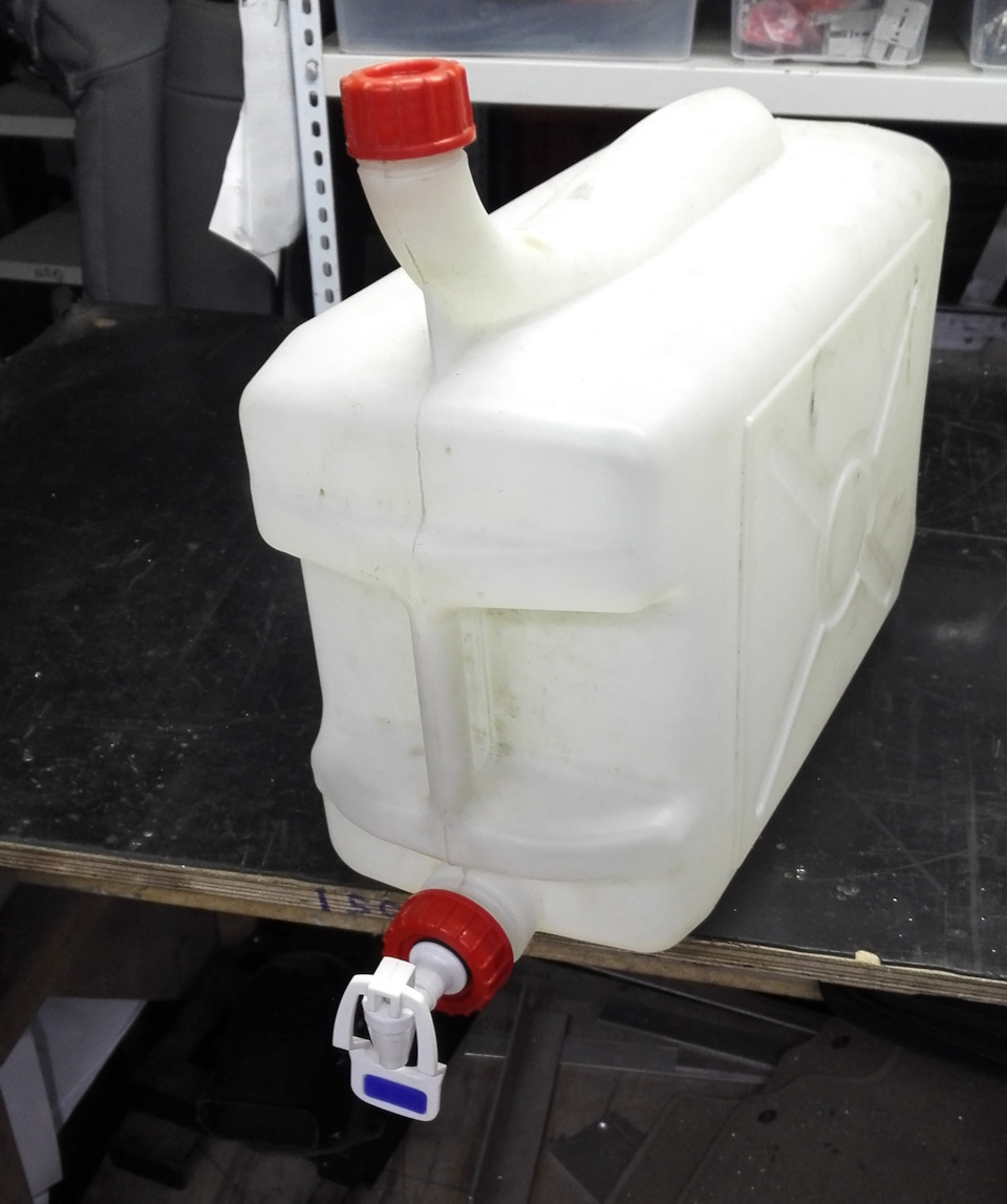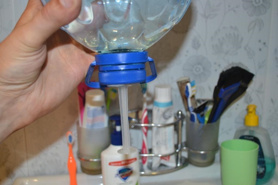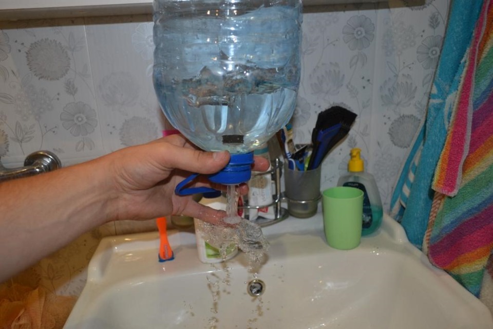 Еще раз хочу заметить, что канистры нужны с двумя крышками: через вторую в рабочем положении такого умывальника должен поступать воздух.