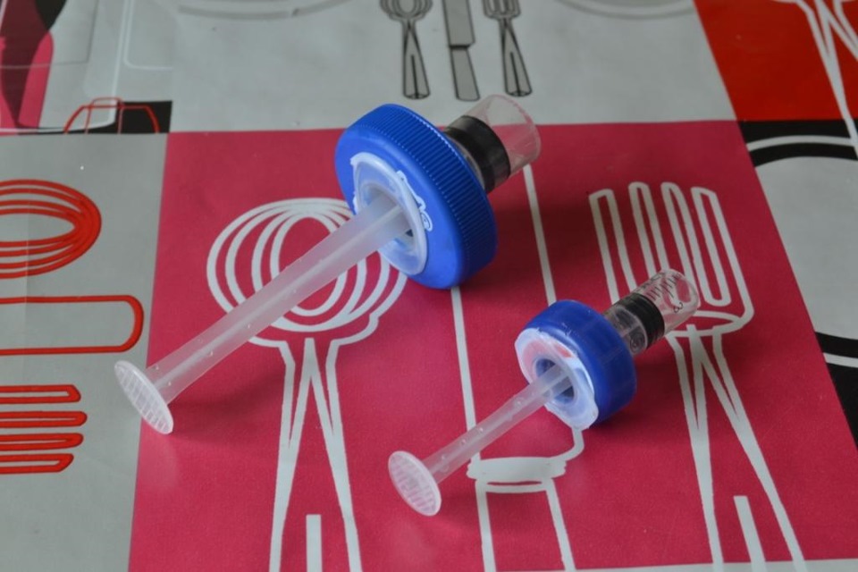 Для уменьшения трения о стенки шприца, мы подрезаем ребра жесткости на поршне