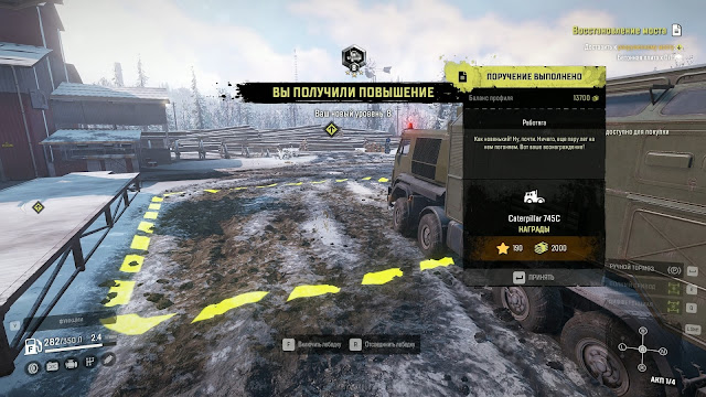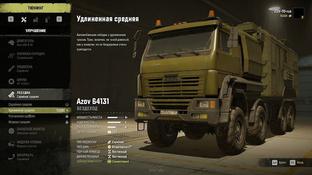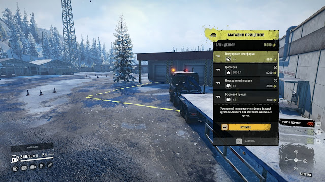 Игра наказала, что платформу не поставил Шуруем в гараж. Пробежался по тюнингу, ничего нового, ну почти, только удлиненная лебедка, а на сколько не пишут, и как раз финансов не хватает.
