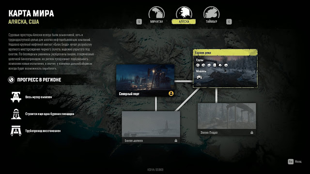 Доехал до тунеля, посмотрим че за карта то. Блин я ж еще главную Аляску не прошел там дофига заданий в меню, а может они на все карты "округа Аляски". Почти тоже, но я так и думал, округ Аляски же.