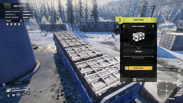Для выполнения задания нужен прицеп аж на 4 груза, "Бочки с топливом с буровой площадки, а вот прицеплю ка я, тот большой прицеп на 5 погрузок, но для этого нужно эвакуироваться в гараж, и поставить седло, для того прицепа, заодно и проверю в магазине прицепов,(правильно ли я расчитал) прицепится он или нет, но покупать не собираюсь, итак дофига разбросал по карте, а на буровой площадке как раз тот большой стоит, на котором трубу везли.