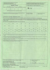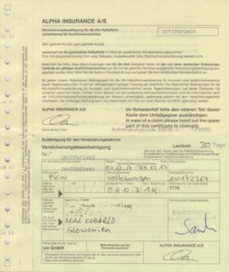 Вторым делом покупается страховка, её делают в том же здании другие конторки. Наша страховка на 30 дней, состоит из желтой части и зеленой (желтая действует по Германии, а зелёная по всей Европе, она же зелёная карта). Уточню, есть еще на 15 дней, но так как мы свой автомобиль гоним в Словению, то нам нужна более длительная страховка чтобы пройти омологацию. Страховка вместе с номерами стоила 98 евро. Оплачиваешь, берешь квиточек и бегом обратно.