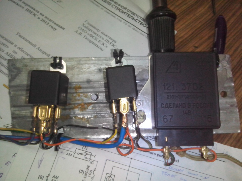 Помню хорошо, что 4х контактное реле подает напряжение с аккумулятора, управляется замком зажигания.