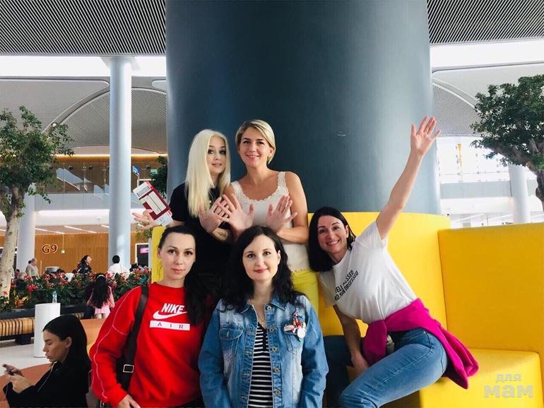 С девчонками встречались в новом аэропорту Стамбула. Впечатлил. Очень. Красивый и современный. В этот раз нас было аж 8 человек. Ну, люблю я большие компании:)) На фото не все)))