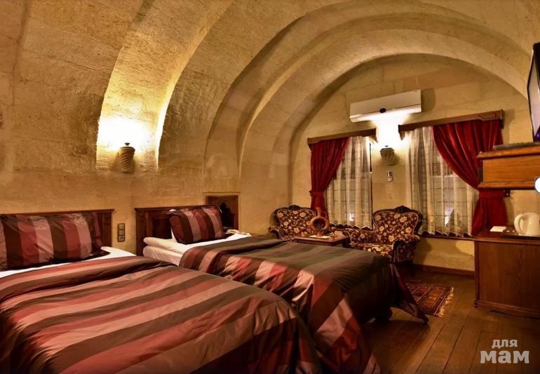 У отеля Taskonaklar большая территория, номера построены прямо в скалах, есть люксы с джакузи на крыше — идеальное место для блогеров или молодоженов. Из отеля открываются изумительные виды на взлетающие шары по утрам, а уровень сервиса соответствует звездам. Чего стоят одни завтраки с видами на долину.