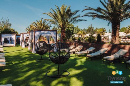 Территория отеля включает в себя благоустроенный пляж, особенность которого заключается в том, что первая часть пляжа покрыта мягким песком, а вторая – мелкой галькой. Он оборудован туалетами, душ-кабинами, кабинами для переодевания, водными аттракционами, а также имеется медпункт, магазин, кабинет массажа и лаунж-бар.