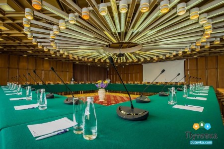Также в отеле созданы условия для корпоративных мероприятий и деловых встреч, благодаря наличию просторного киноконцертного зала, способного вместить более четырехсот человек, конференц-залов и культурно-выставочного комплекса.