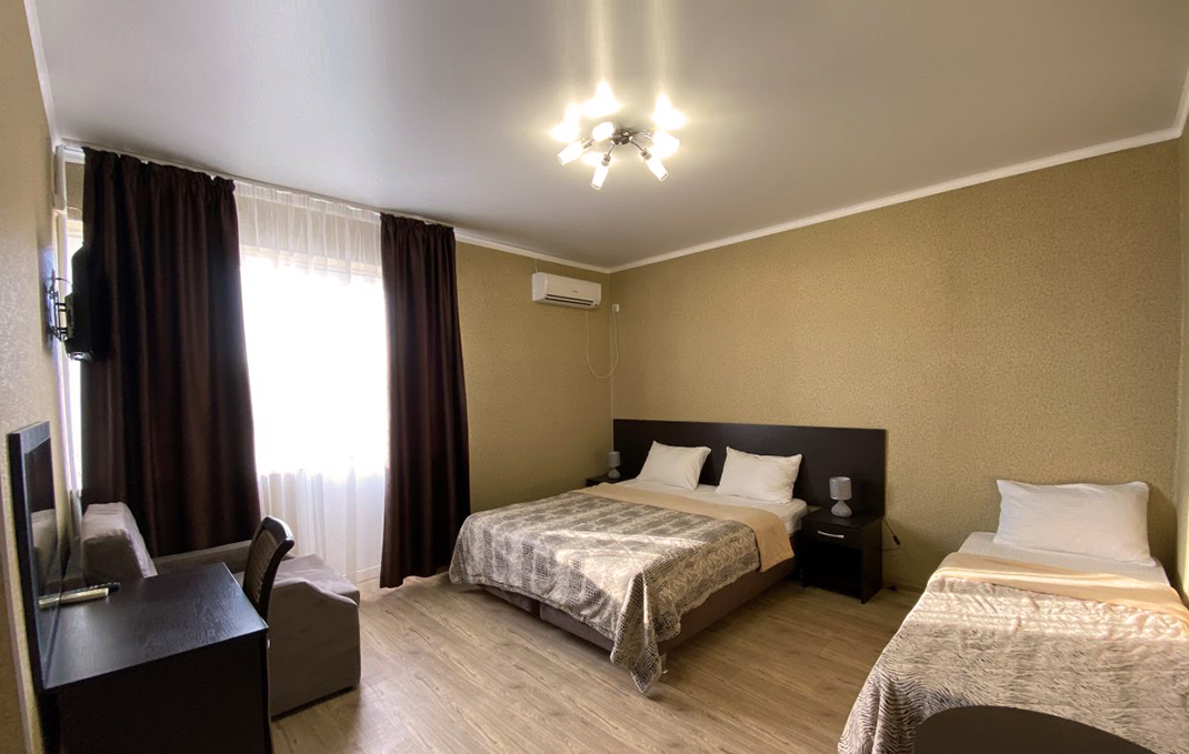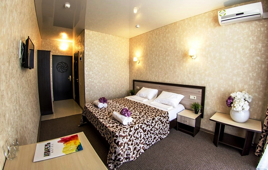 Современный 3-этажный отель «Акварель-Family», расположенный рядом с лиманом в курортном поселке Витязево, создан исключительно для расслабляющего, беззаботного и нескучного семейного отдыха. Номерной фонд отеля составляет 70 номеров разных типов: эконом-класс, стандарт, family room и номер-studio - каждый оснащен с максимальным уровнем комфорта. Ребенок до 5 лет включительно размещается бесплатно без предоставления места с питанием. По желанию и предварительному запросу можно заказать дополнительное спальное место или детскую кроватку за отдельную плату.