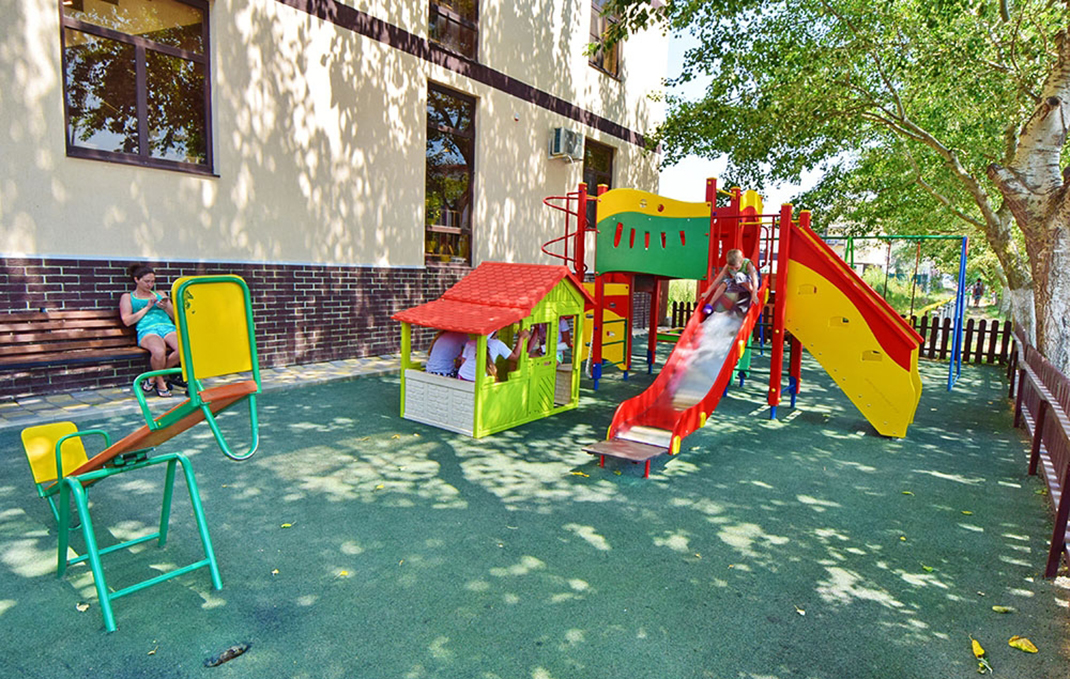 В сказочном мини-городке предоставляется много развлечений для родителей с детьми: 2 открытых бассейна - с морской и пресной водой (детский) с зонами отдыха, собственный аквапарк с аттракционами для любого возраста, детская площадка, электромобили, велосипеды, тир, бильярд, кинотеатр. Ежедневно аниматорами проводятся интересные программы.