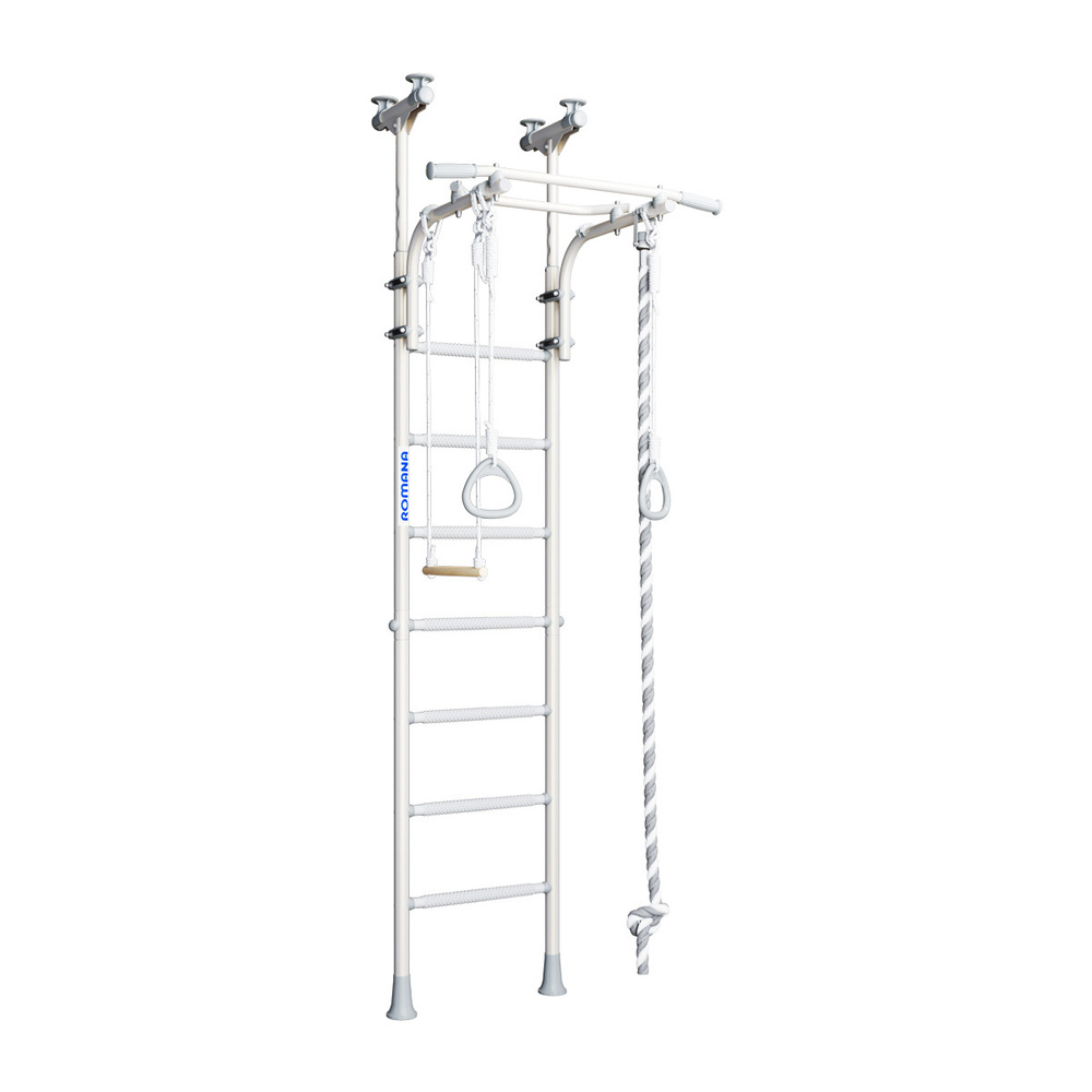 Шведская стенка Athleus Юный Атлет, регулируемый турник, пристенный, пастель (бело-серый)