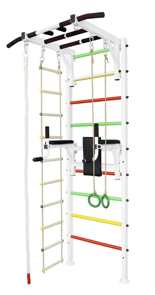 Лучшая цена на Ozon Бестселлер Детская шведская стенка со съёмным турником Белая. Спортивный комплекс.