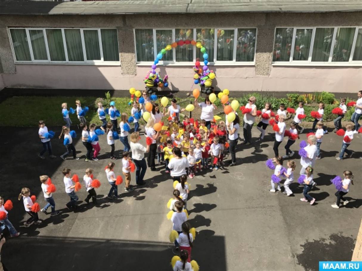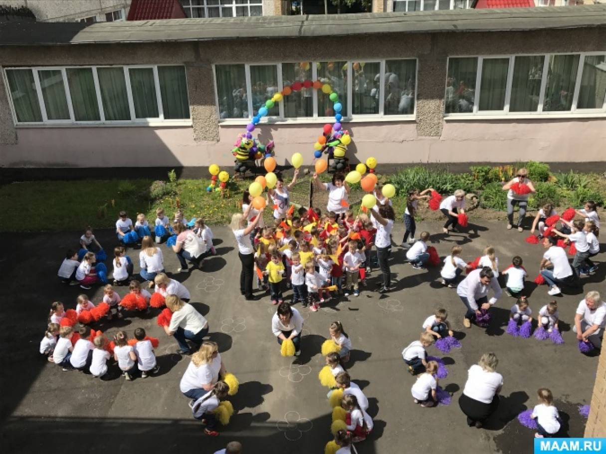 Я поздравляю вас с 1-м днем лета и Днем защиты детей. Желаю вам веселого, солнечного и интересного лета! Желаю вам побольше физкультурой летом заниматься. Да от солнышка, воздуха и воды здоровья набираться. У меня есть для вас подарки(раздает детям мыльные пузыри).