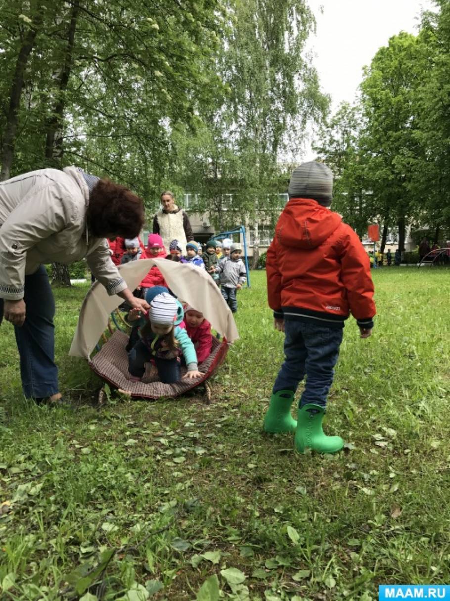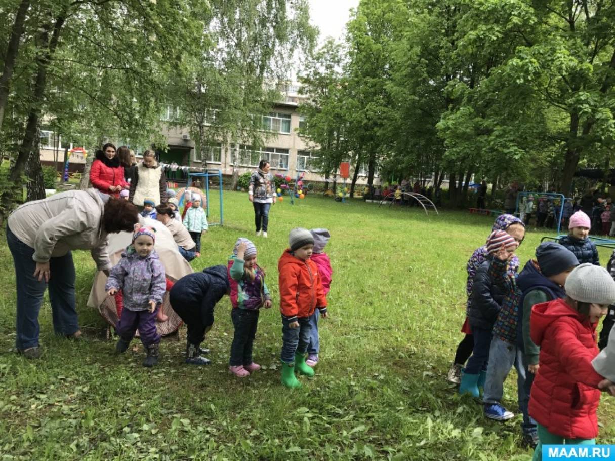 Солнышко: до свидания, ребята, я к вам буду заглядывать в оконце и согревать теплом и светом.