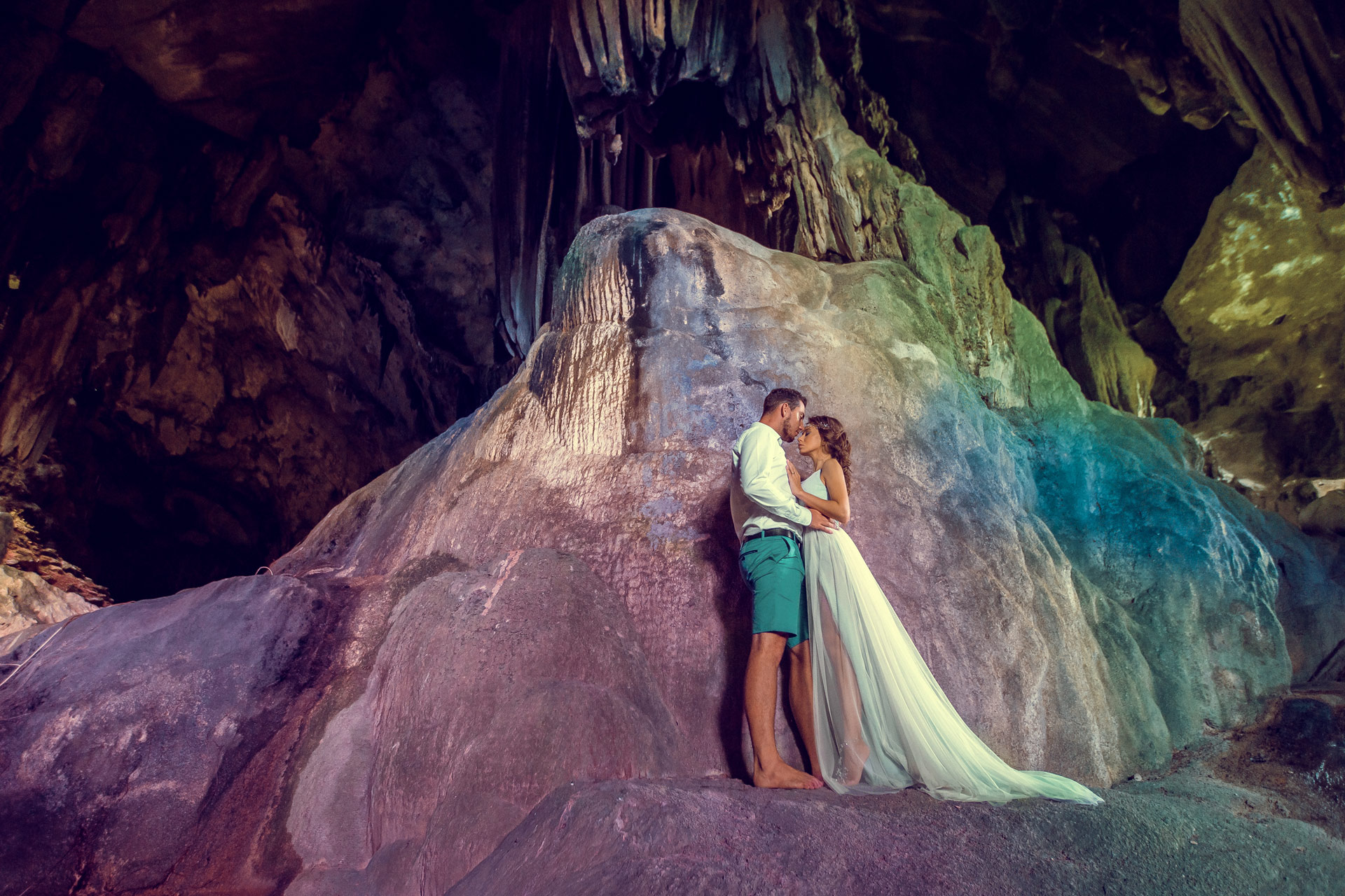 Мария Мальцева, администратор Phuketwed . Пещера, которую мы выбрали для церемонии, очень красива, внутри она играет невероятными красками. Здесь можно сделать интересный декор, дополняющий пространство, либо оставить все абсолютно нетронутым. В любом случае, в таком месте получаются уникальные и неповторимые фото. Это что-то абсолютно нестандартное, эксклюзивное. К тому же многие пары комбинируют локации, проводя церемонию в пещере и дополнительно фотосессию на берегу моря.
