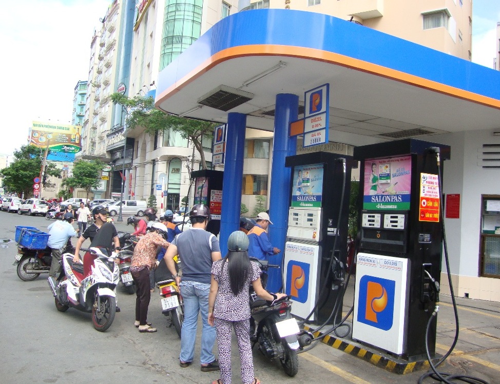 А это уже заправка в городе — цена на топливо не очень разница с ценой на топливо в южно-сахалинске. Бензин стоит 20 тыс донгов — это около 1 доллара, дизельное топливо 21 тыс донгов — это около 1 доллара и сколько то центов. Вьетнам сам добывает себе нефть — существует много совместных предприятий — в частности Vietsovpetra — у них как вроде основной добытчик и продавец. Компания создана в сотрудничестве с русскими.