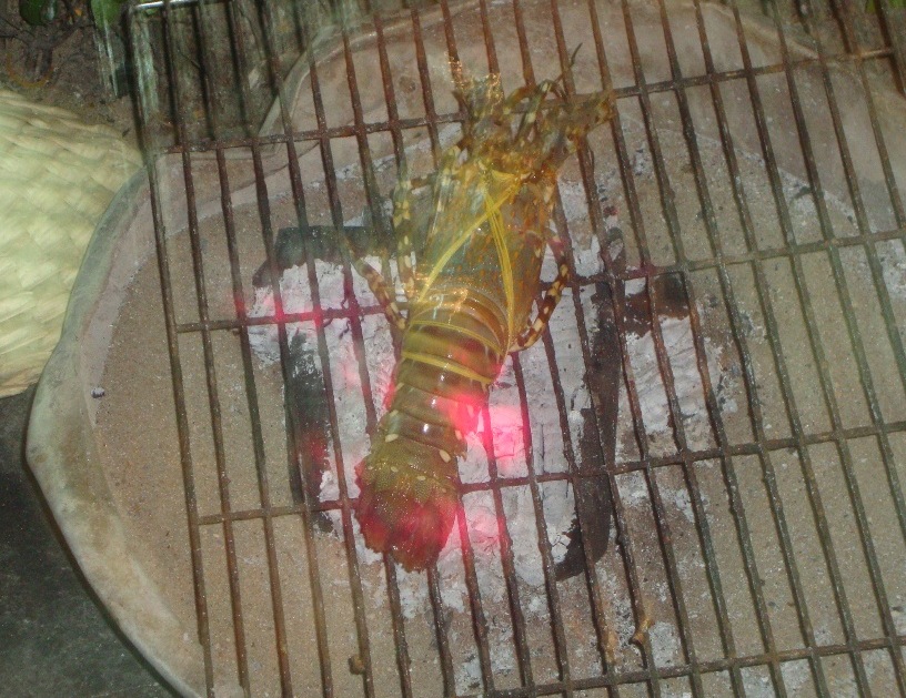 Нья Чанг славится своими морскими дарами. Практически всех их можно попробывать в местных ресторанах. Еще Вьетнамцы очень предприимчивые — торгует всем и везде. Вот мы с Иришей решили попробывать лангуста — вот такой маленький стоит 100 тыс донгов — это около 5 долларов. Жарят сразу при тебе на улице.