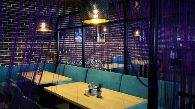 Уютный ресторан с европейским и детским меню, лаунж-зонами и обзором игровой площадки