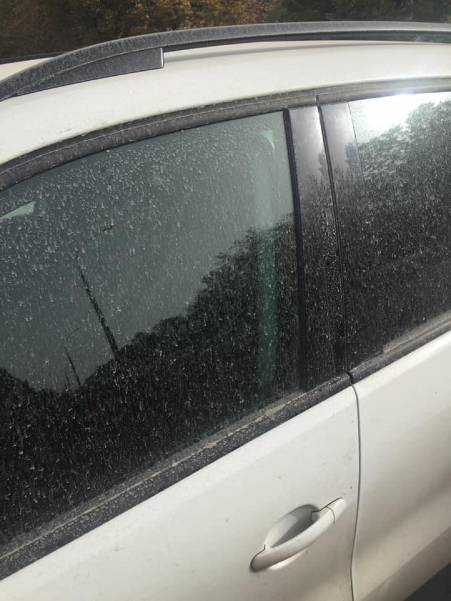 Дело в том, что на автомобилях появился странный налет. Откуда он взялся? Вариантов несколько. Многие пишут, что причина – в дожде, который шел в ночь с пятницы на субботу, с 24 на 25 сентября.