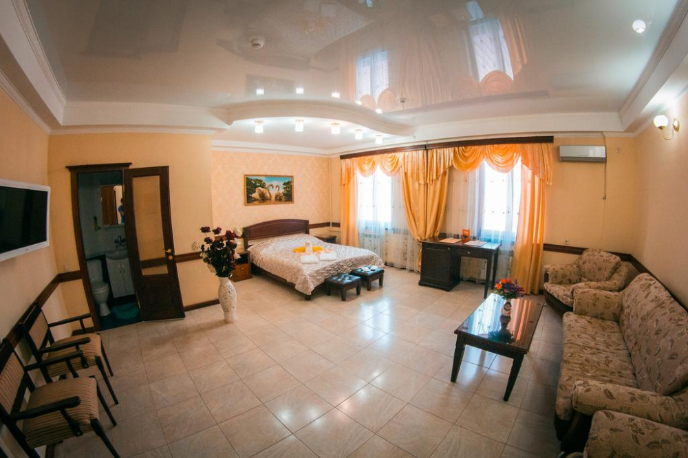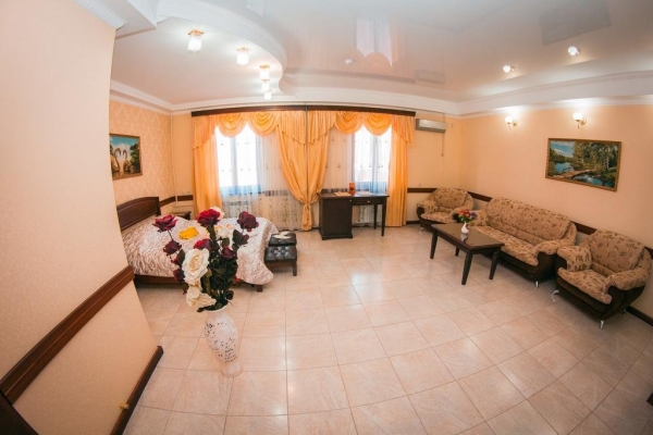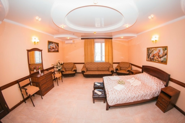 Для размещения предлагаются несколько категорий. Максимальное размещение в номере - 7 человек. Для оформления использован классический сталь интерьера и присутствует вся необходимая мебель.